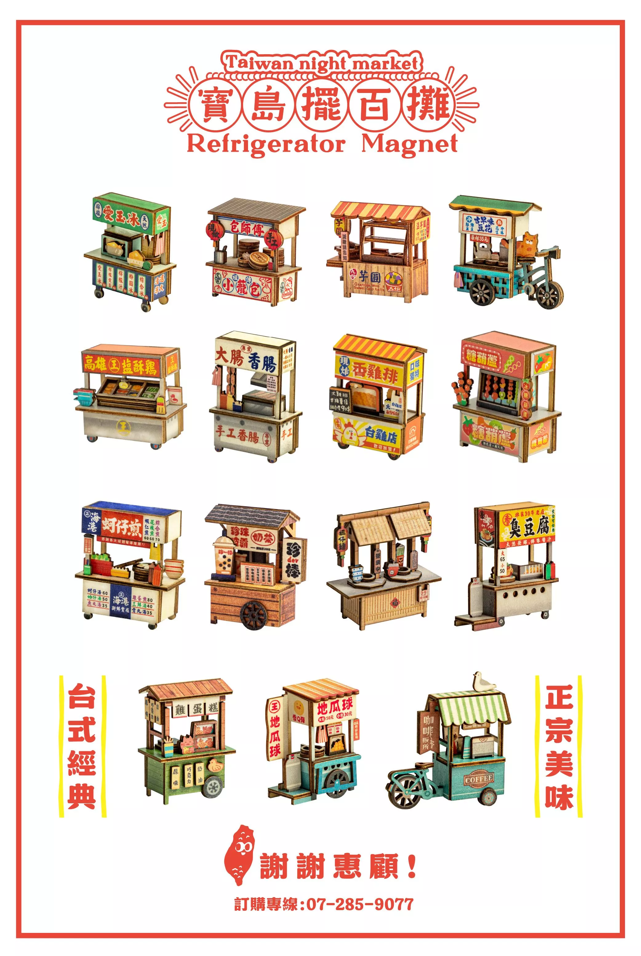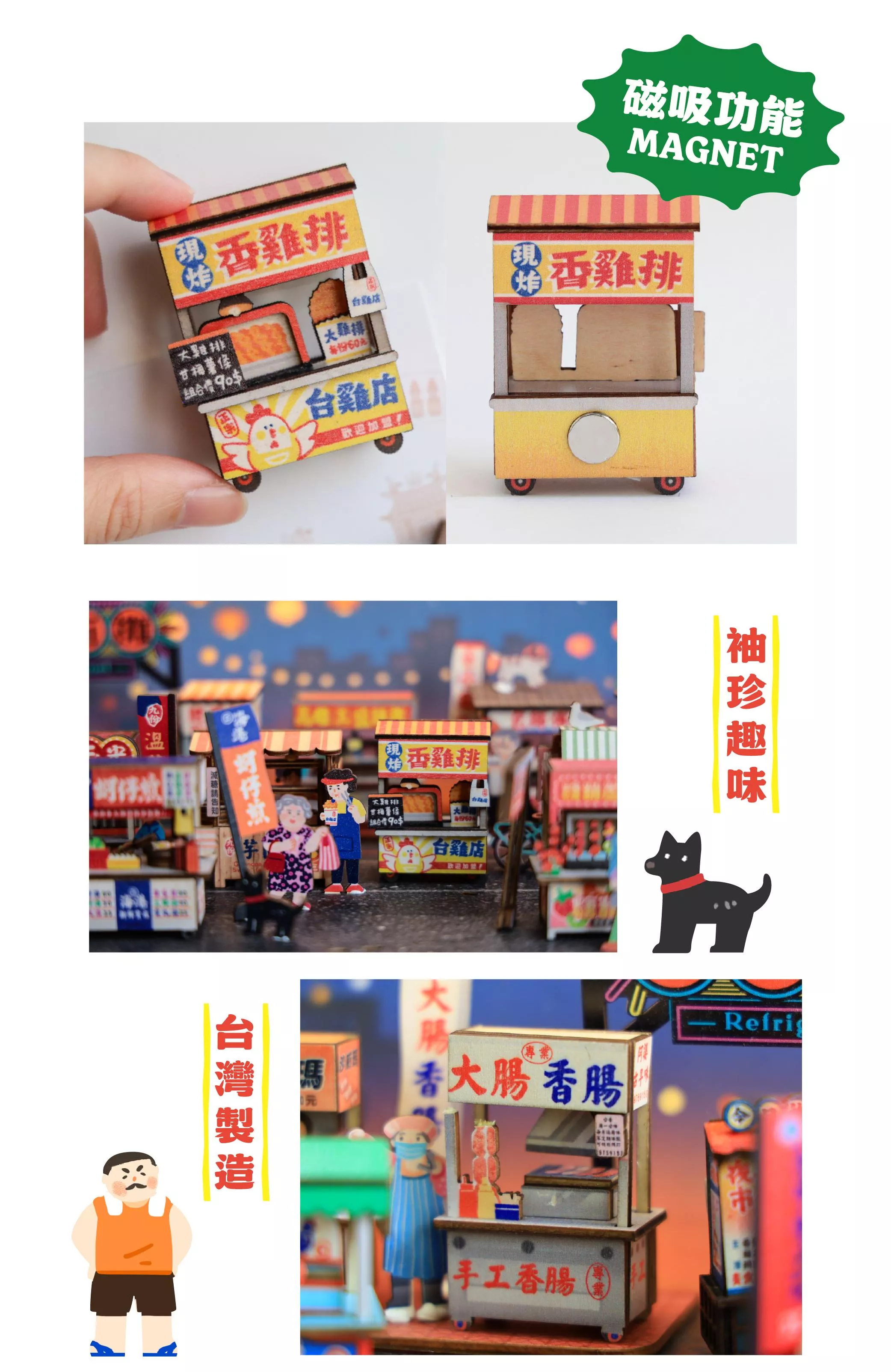 重現熱鬧攤位與美味小吃,結合磁鐵設計,
